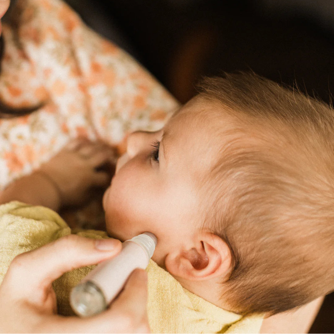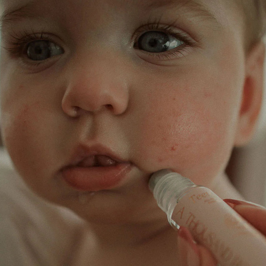Bébé Balm™ is the easy ritual that turns tough teething moments into calm cuddles. A few soft rolls along the gumline and jawline, and peace returns.