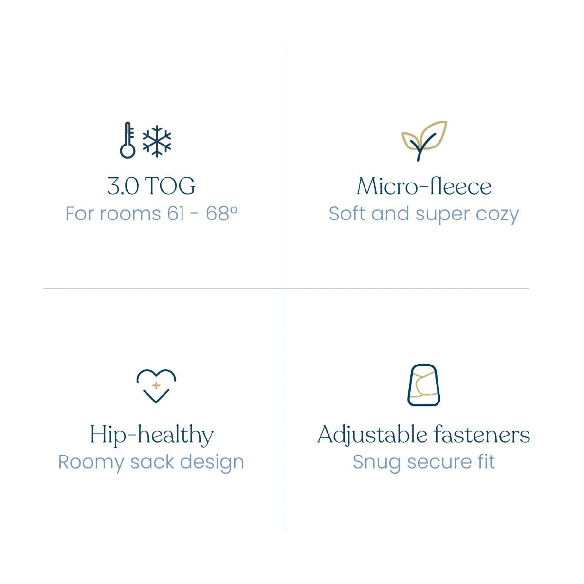 Yes — the all-season fleece weave regulates body temperature naturally. It’s light enough for summer and insulating enough for cooler nights, keeping your baby snug but never sweaty.